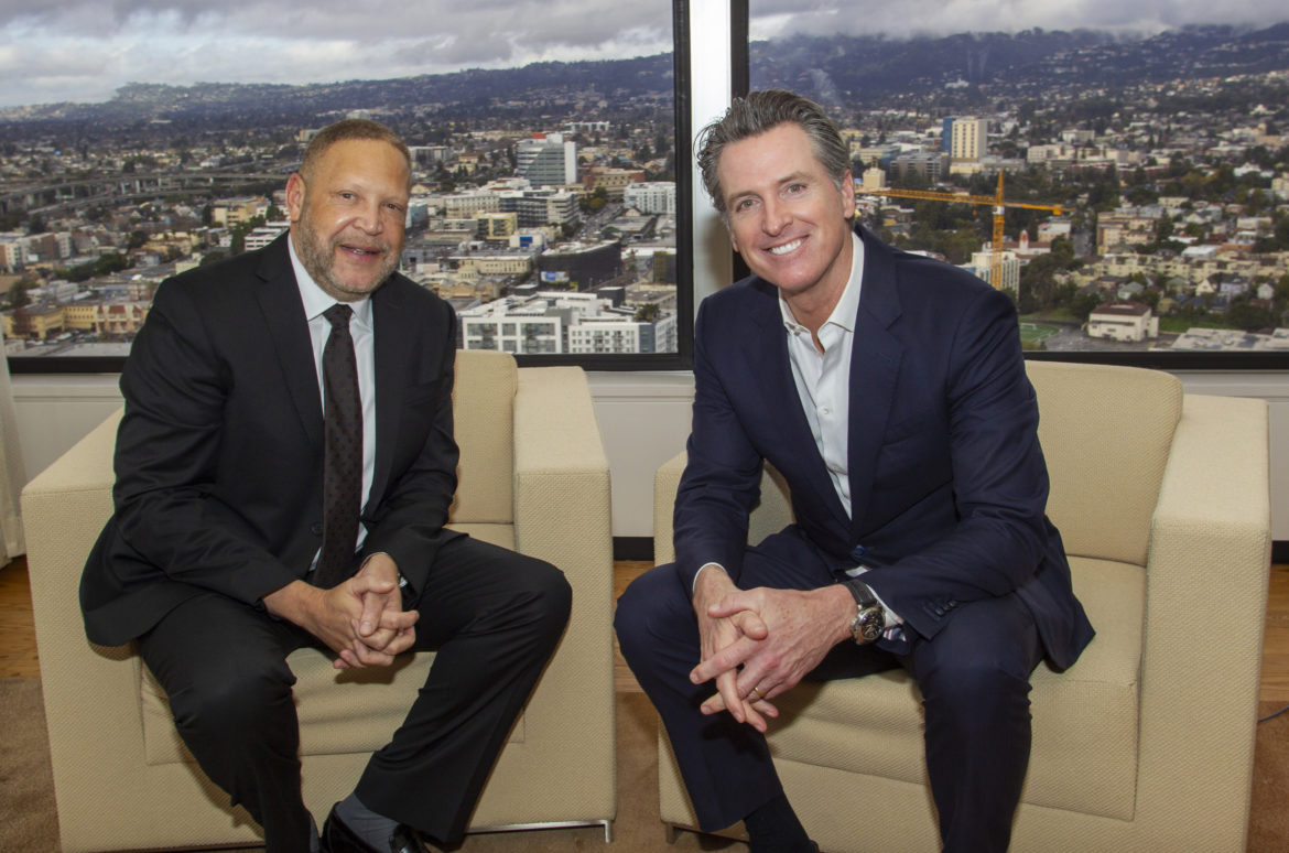 Pictured: Kaiser Permanente Chairman and CEO Greg Adams and California Governor Gavin Newsom.